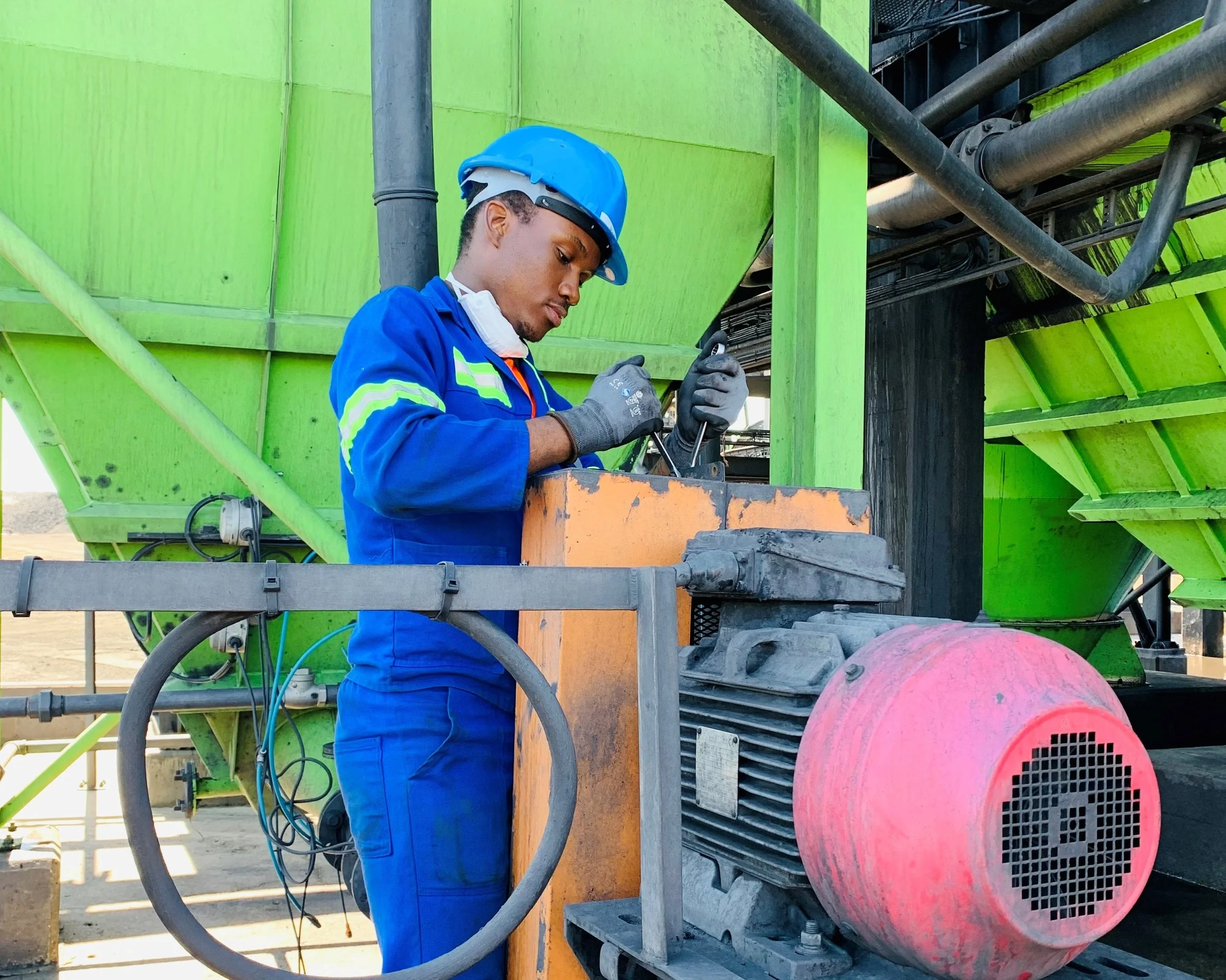 Mduduzi handling a practical task during his vacation work experience at Khanye Colliery in 2023